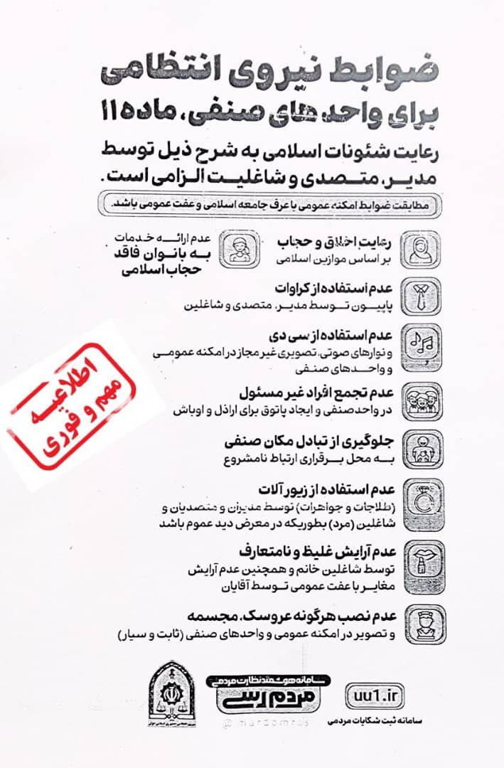 ضوابط نیروی انتظامی برای واحد های صنفی, ماده 11